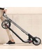 Вес скутера 12.5 кг. Он изготовлен из сверхлегкого и высокопрочного сплава, дополнительным преимуществом является удобный складной механизм. Самокат быстро складывается при нажатии педали (для этого даже не нужно наклоняться) и фиксируется в этом положении специальным крючком, соединяемым с задним крылом. У портативного транспорта всего одна кнопка управления. Нажмите на нее один раз для включения устройства, два раза для смены скоростных режимов (спортивного, стандартного, экономичного), три раза – для выключения. Рядом находится цифровой дисплей, на котором можно просматривать актуальную информацию (километраж, остаточный заряд и т. д.), производить регулировку параметров и круиз-контроля. Также доступно мобильное приложение.