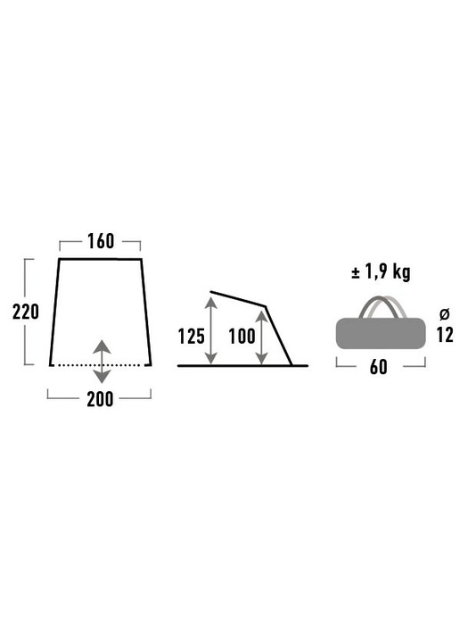 - Размер палатки 220х200х160 см
