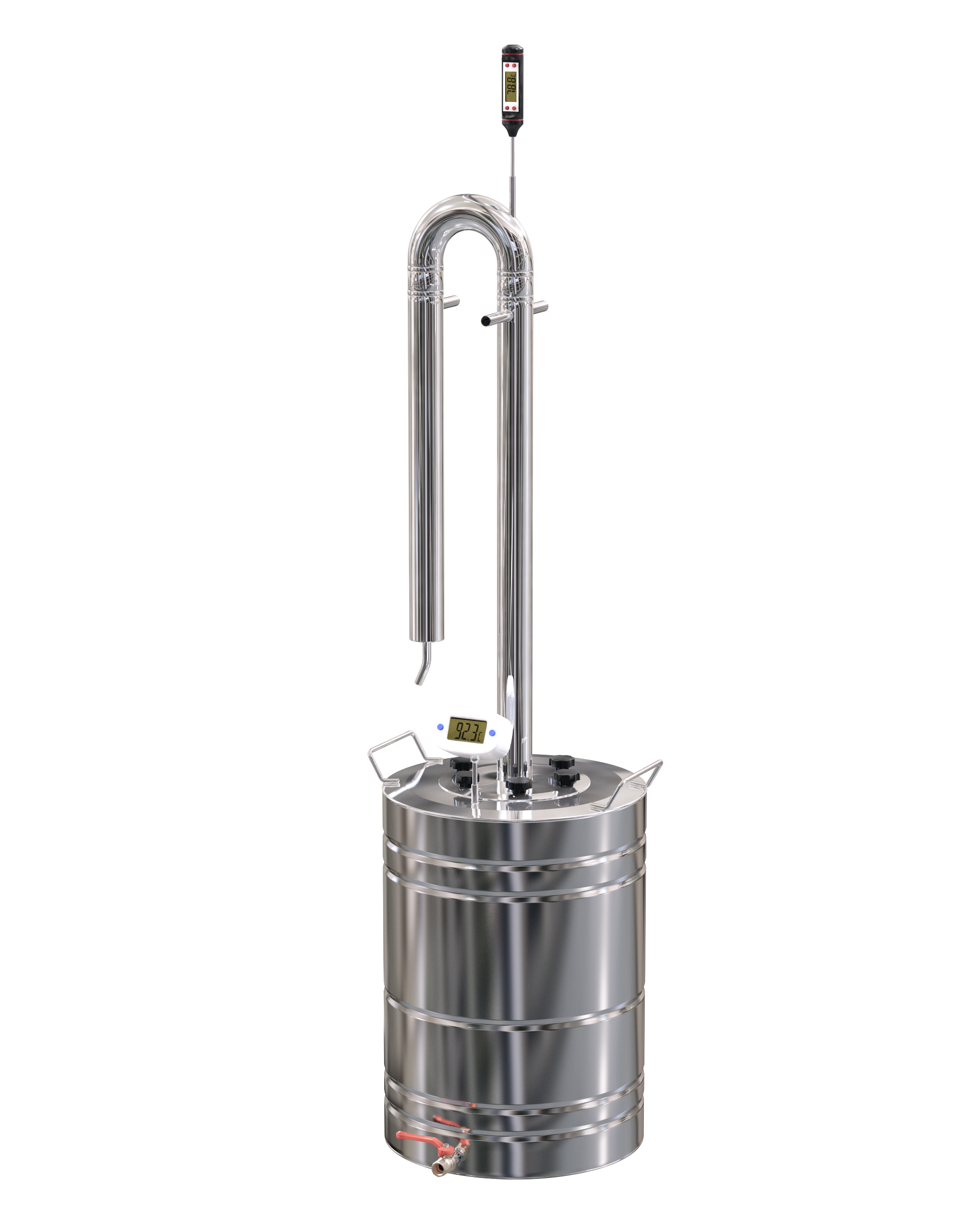 Вы сможете всегда контролировать температуру перегонки с помощью двух термодатчиков, один из которых установлен в максимально высокой точке колонны, другой — на баке.